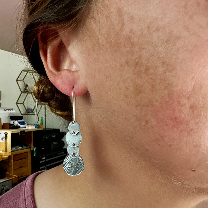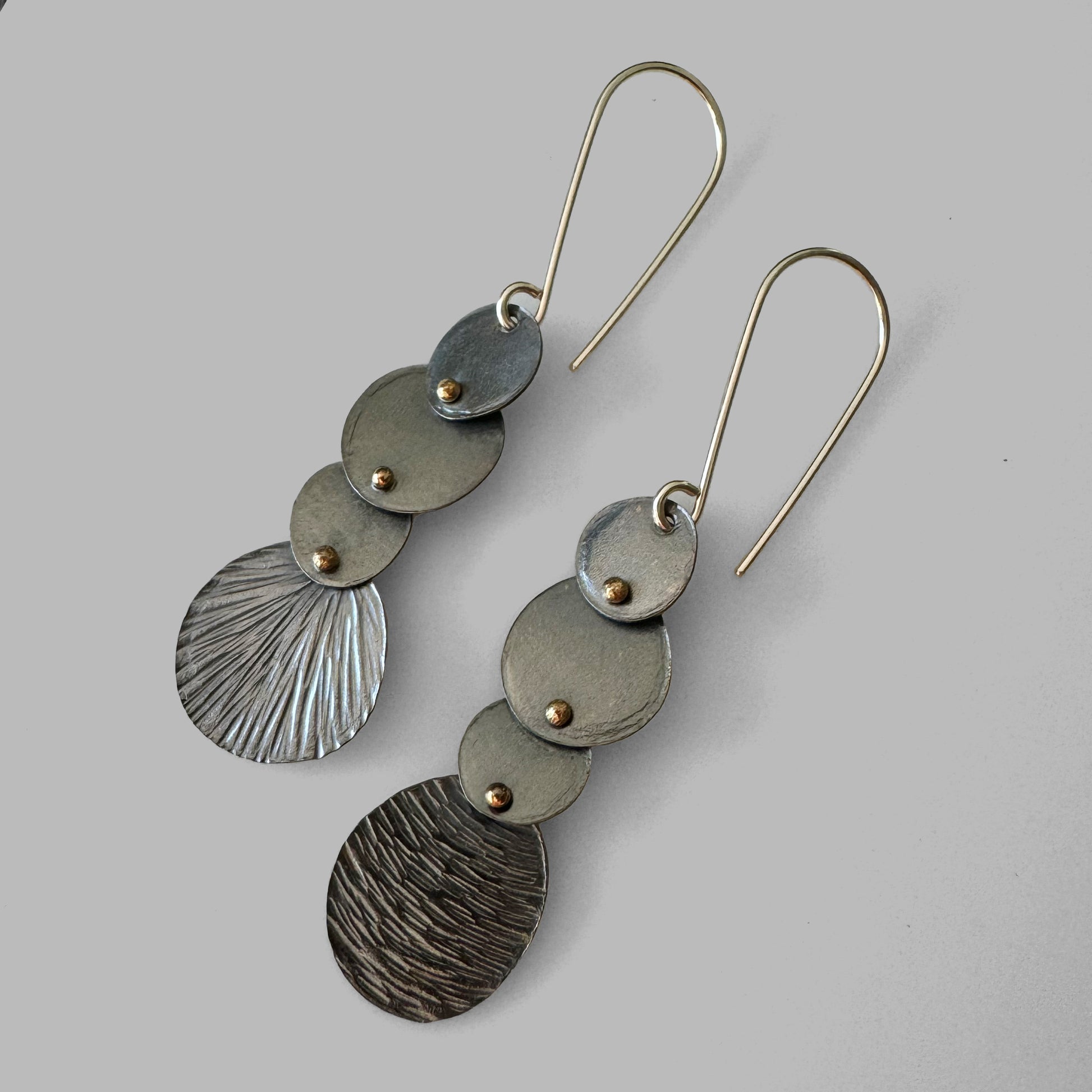 Handmade from sterling silver with 14k yellow gold linking the silver pieces. Finished with a dark patina.