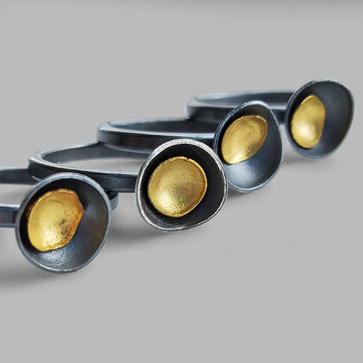 Handmade in sterling silver with 18k yellow gold and finished in a dark patina.