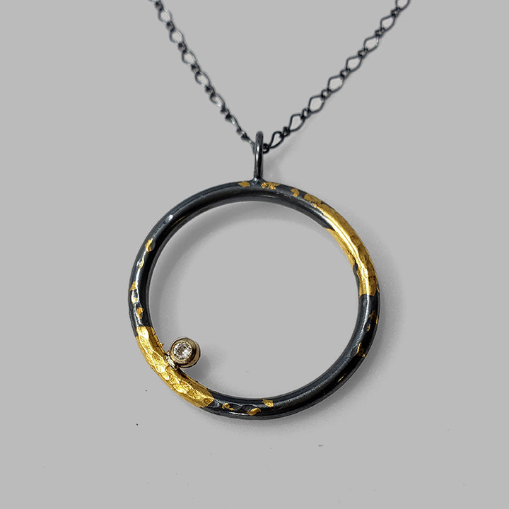 Made of sterling silver, 24k gold keum boo and a diamond set in 14k gold.