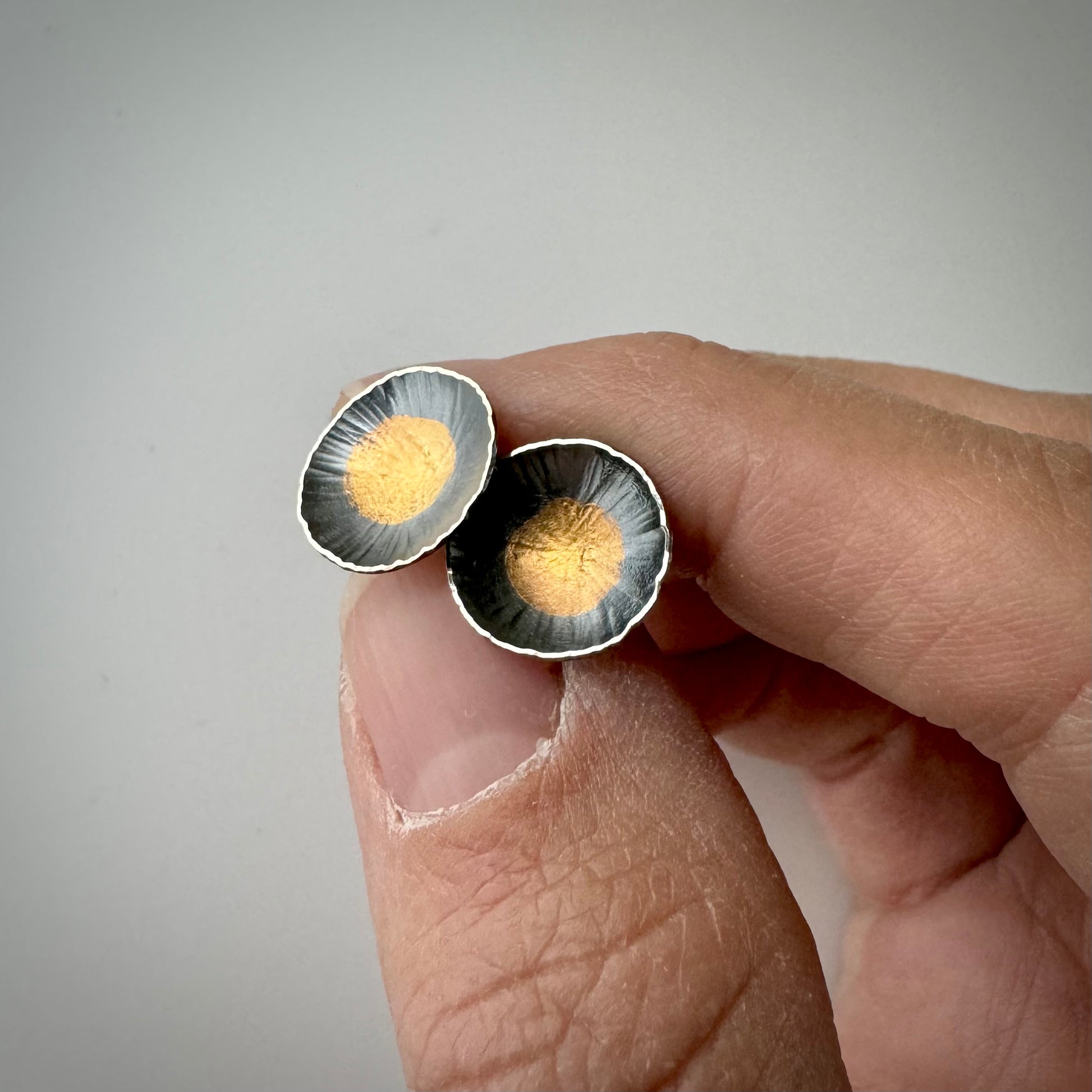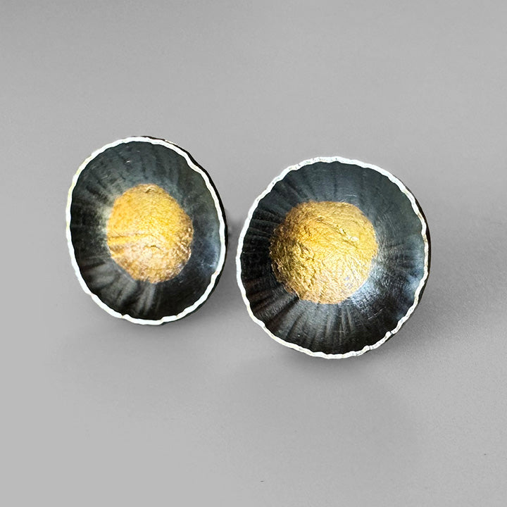 Handmade from sterling silver with 24k gold keum boo and finished with a dark patina.