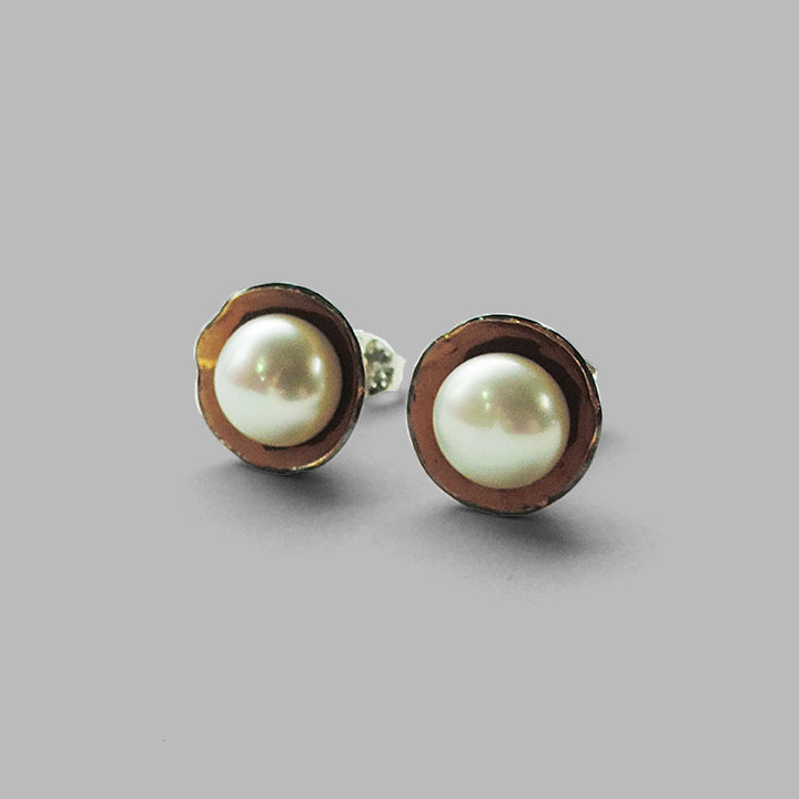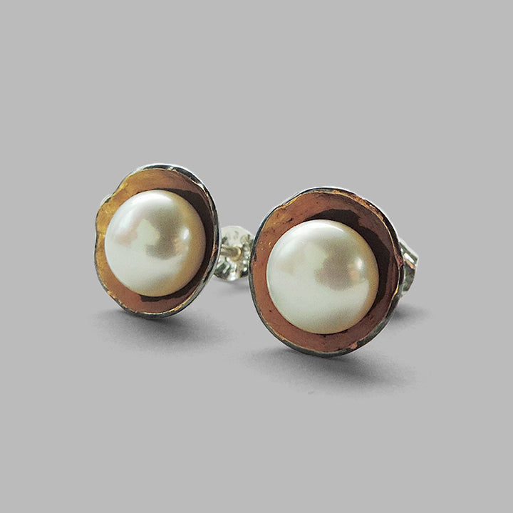 Made of sterling silver, 24k gold keum boo, a stunning freshwater pearl and finished with a dark patina.