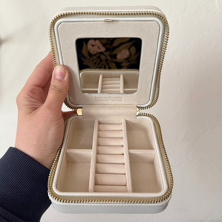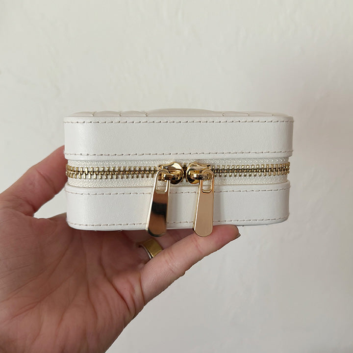 A sophisticated case with clean lines in rich smooth white leather and stunning gold accents. The LutreLoc interior keeps your jewelry from tarnishing and organized. It's the perfect little case for travel or everyday storage.